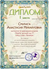 высшее, Федеральное Государственное образовательное учреждение высшего профессионального образования "Национального государственный Университет физический культуры, спорта и здоровья имени П.Ф.Лесгафта,Санкт-Петербург" по специальности физическая культура, квалификация - бакалавр, 2009 г высшее, Федеральное государственное образовательное учреждение высшего профессионального образования "Национального государственный Университет физический культуры, спорта и здоровья имени П.Ф.Лесгафта, Санкт-Петербург" по специальности адаптивная физическая культура, квалификация - Специалист по адаптивной физической культуре, 2010 г проф.переподготовка: Частное образовательное учреждение доролнительного профессионального образования "Академия бизнеса и управления системами" по специальность: физическая культура в дошкольных организациях, квалификация - инструктор по физической культуре в области физической культуры в дошкольных образовательных организациях, 2020 г. |